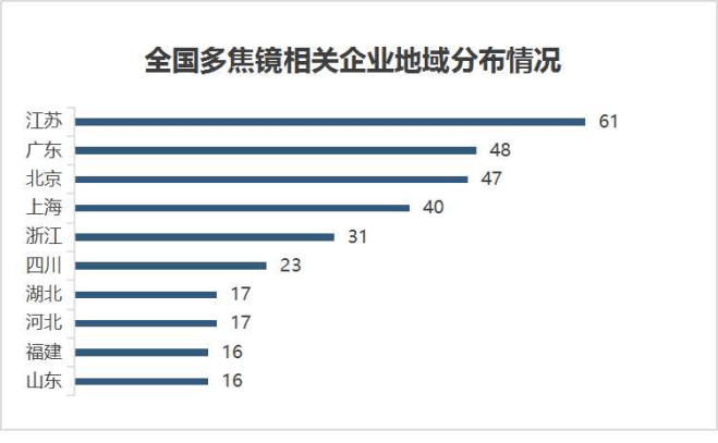 從分布地域上看,國內(nèi)多焦鏡企業(yè)仍集中在南方沿海省份。這一集群狀況與國內(nèi)眼鏡行業(yè)整體分布特征較為一致。江蘇、廣東、浙江等地眼鏡上下游產(chǎn)業(yè)發(fā)展充分,同樣為多焦鏡企業(yè)發(fā)展創(chuàng)造了廣闊空間。