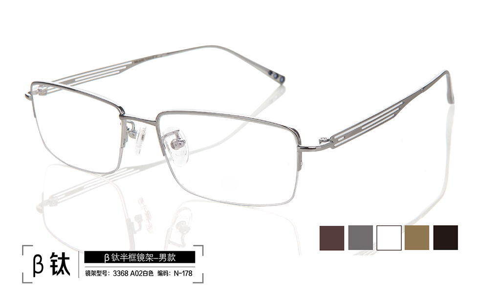 鏡架系列:β鈦半框鏡架 名稱:β鈦半框鏡架 型號: 3368 A13 古銅色;3368 A03 灰色;3368 A02 白色;3368 A01 金色;3368 A04 黑色 編號: N-168;N-177;N-178;N-179;N-180 |