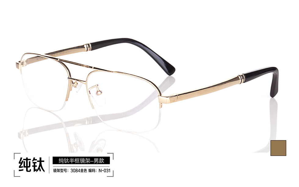 鏡架系列: 鈦金屬半框鏡架 名稱: 鈦金屬半框鏡架 型號:3084金色 編號: N-031 |